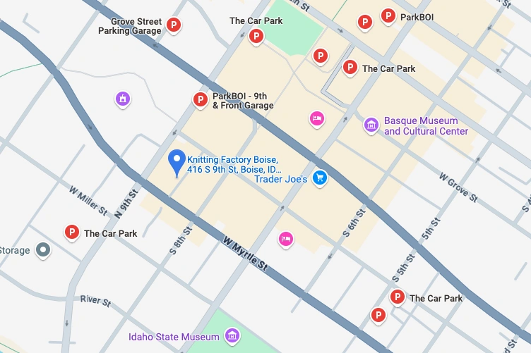 Please allow sufficient time before the event for your travel and parking. Boise traffic is often busier around Knitting Factory in relation to events.